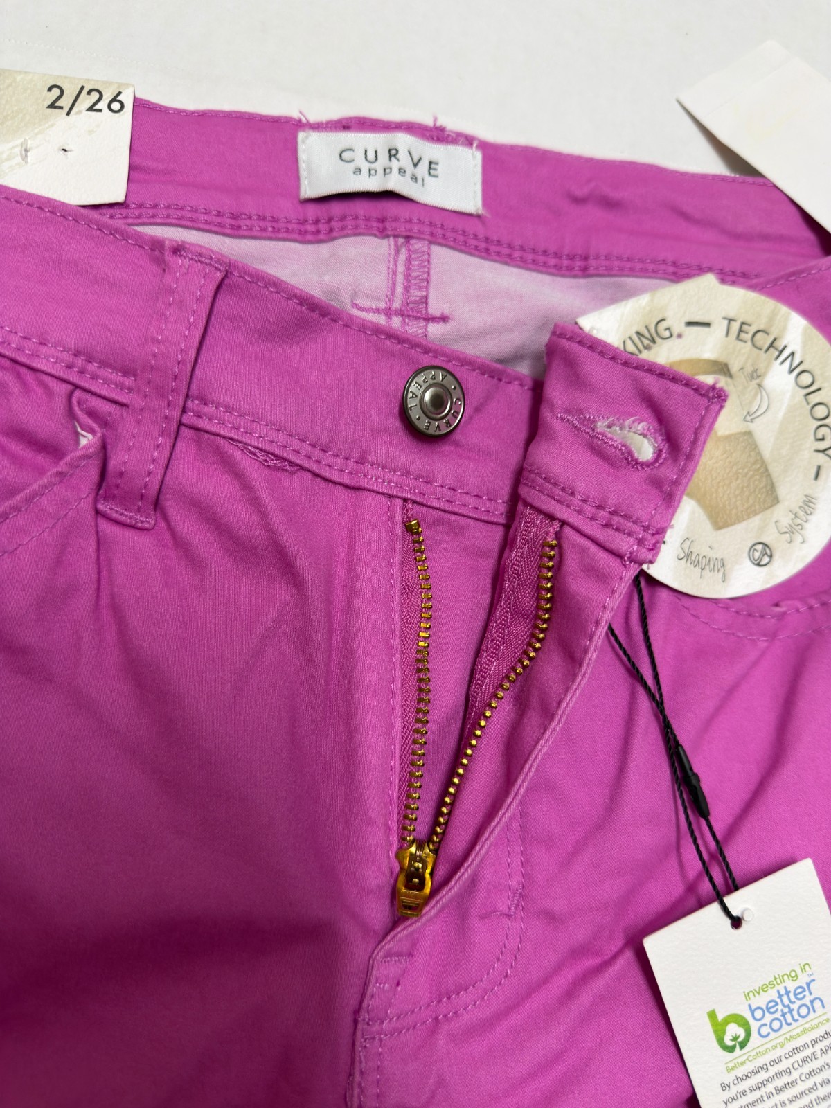 Stylish and flattering Curve Appeal women’s cropped pants in a vibrant purple shade. Designed in Size 2 / 26 , these casual jeans feature a modern cropped length with subtle hem slits , adding a contemporary touch to a classic silhouette.
