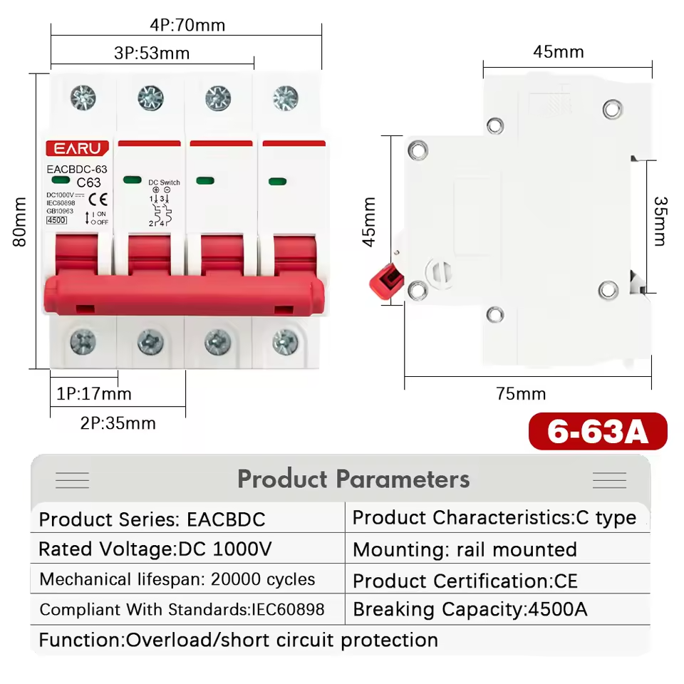 - 1 × EARU Solar DC Mini Circuit Breaker 2P 40A