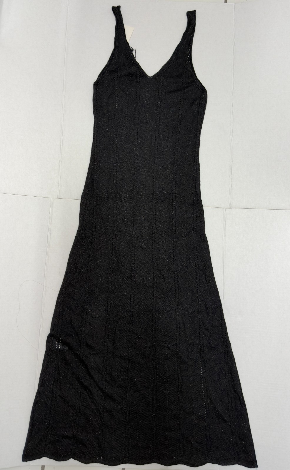 Hunter & Brown Sz Small Black Oatmeal Ribbed Knit Sleeveless Bodycon Midi Dress