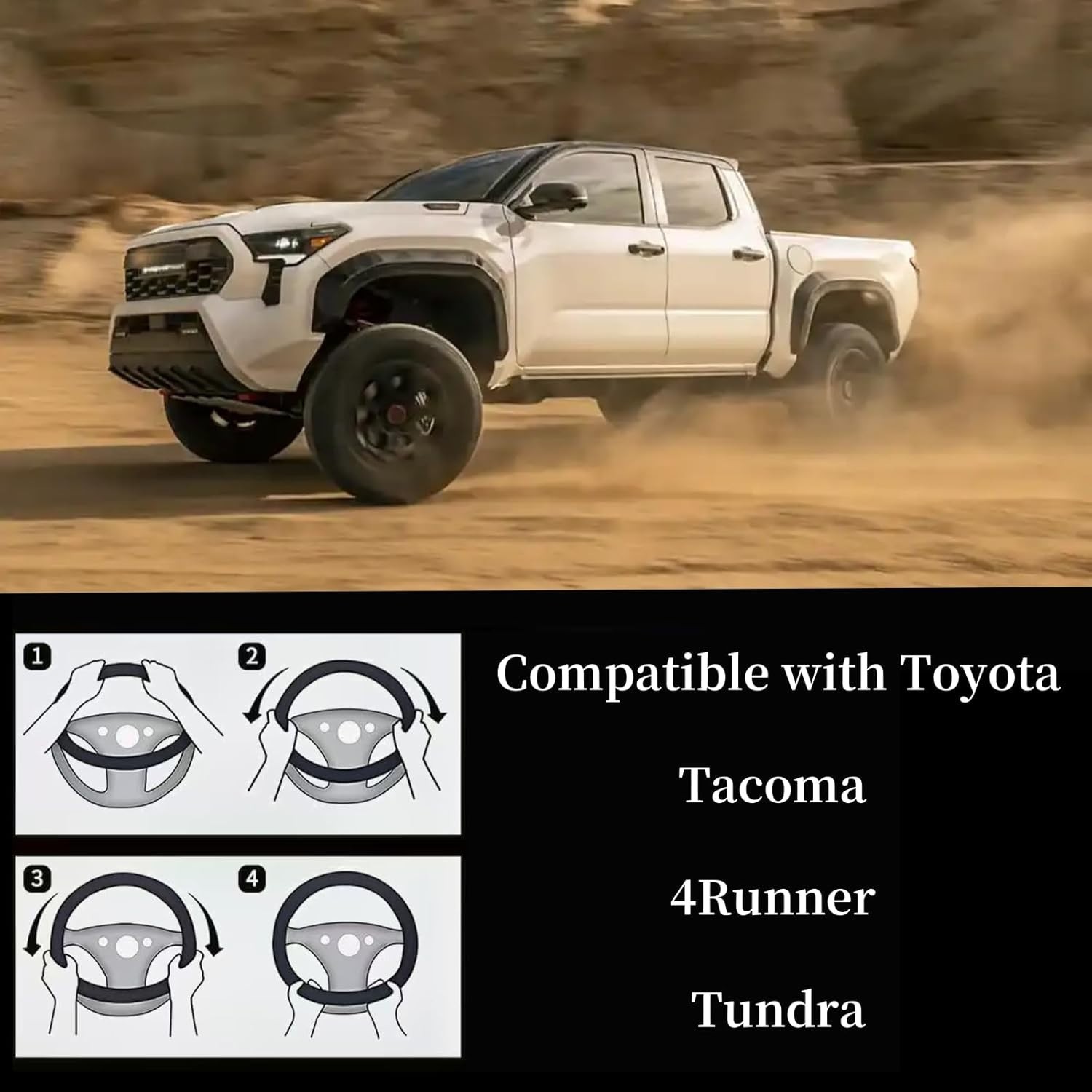 Leather Steering Wheel Cover – Fits Toyota Tacoma / 4Runner / Tundra – 15.5-16 Inch