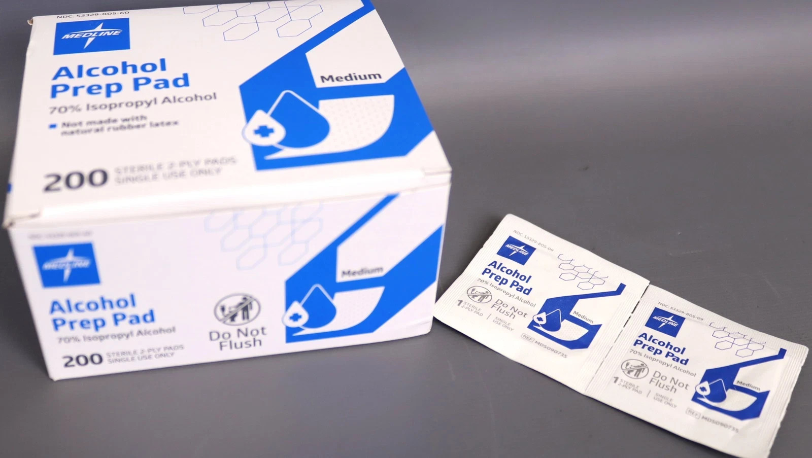 Medline Alcohol 200 Prep Pads Sterile 2-Ply Medium 70% Isopropyl Alcohol