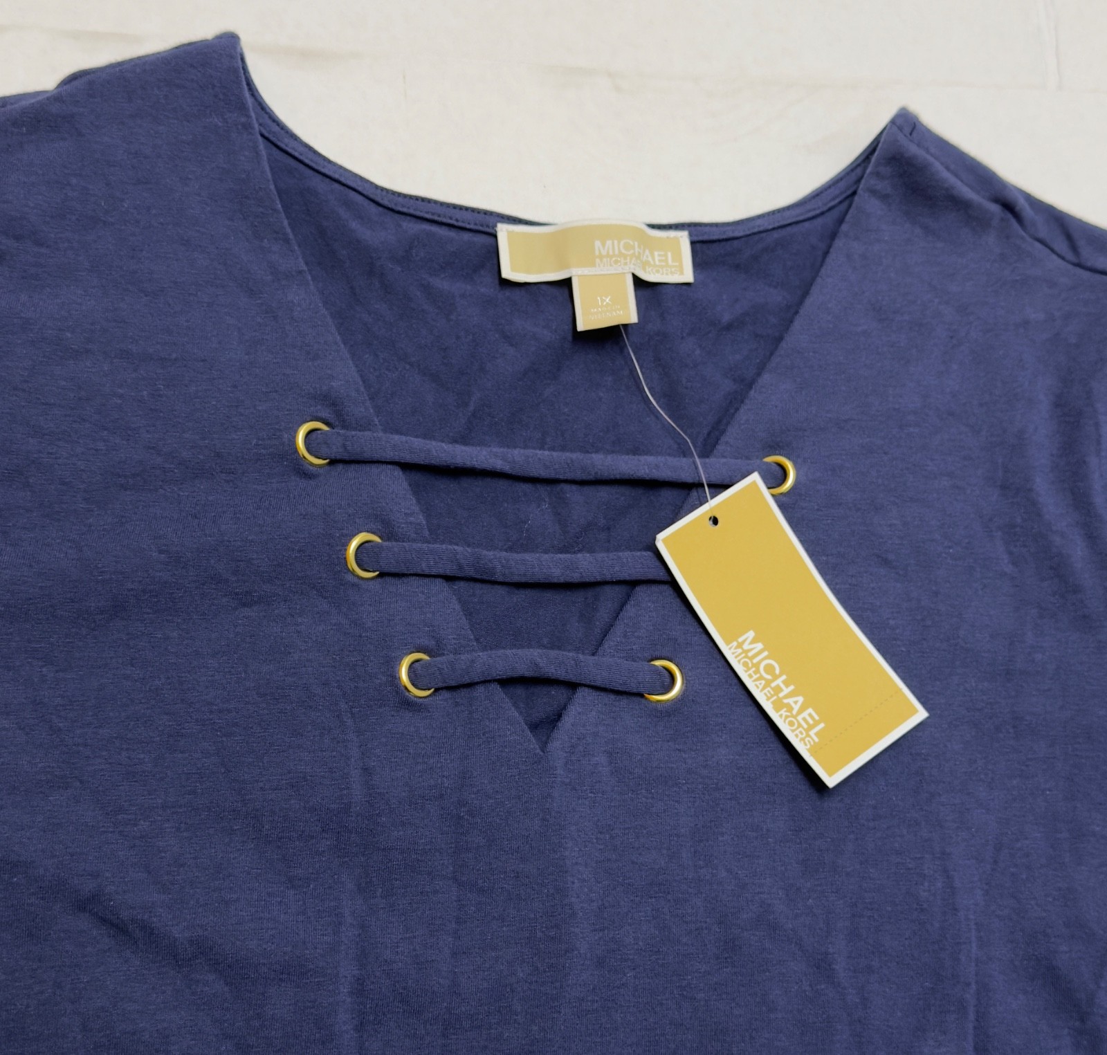 MICHAEL KORS Women’s ShortSleeve Blue Tunic Dress with Crisscross Straps Size XL