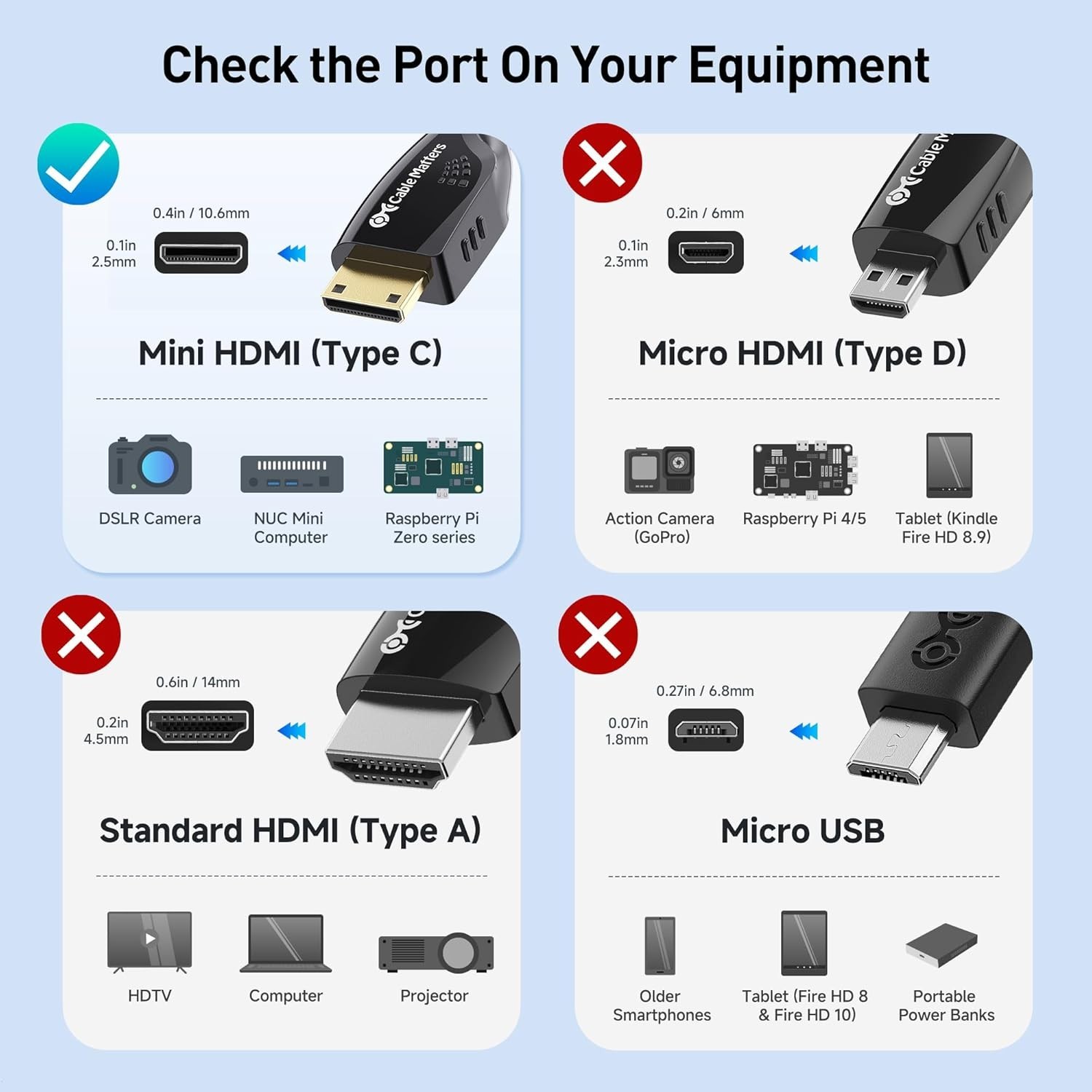 Connector Type: HDMI Type A Male to Mini HDMI Type C