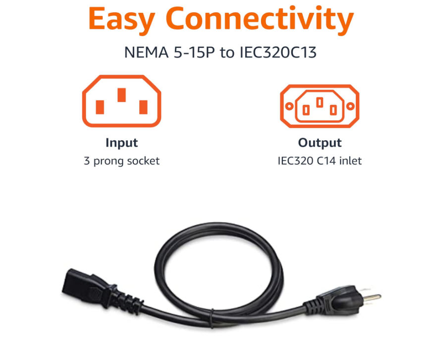 ✨ Standard AC power cable (NEMA 5-15P to IEC C13)