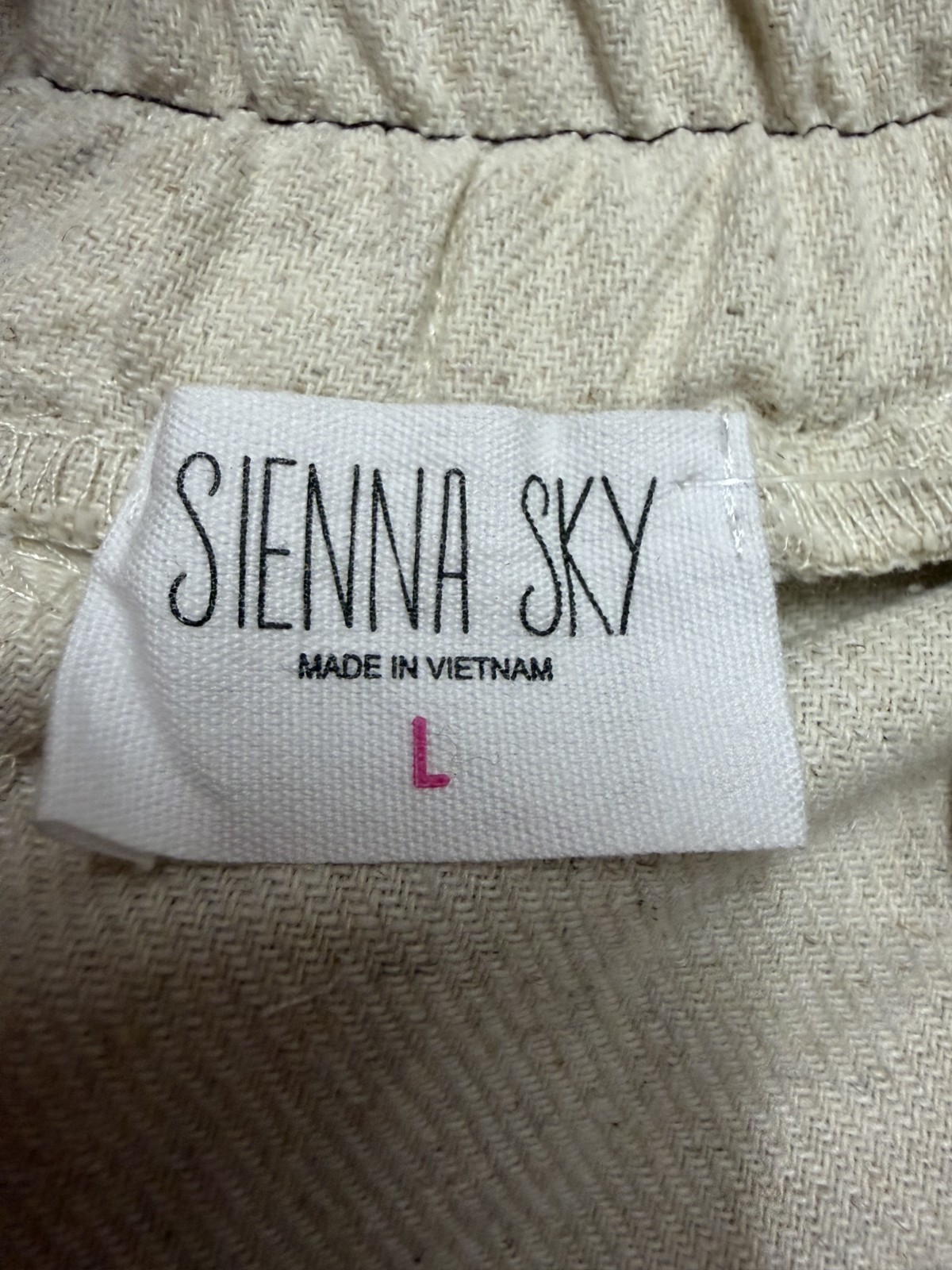 Sienna Sky Beige Pull On Cropped Wide Leg Linen Blend Pants. Size: Large