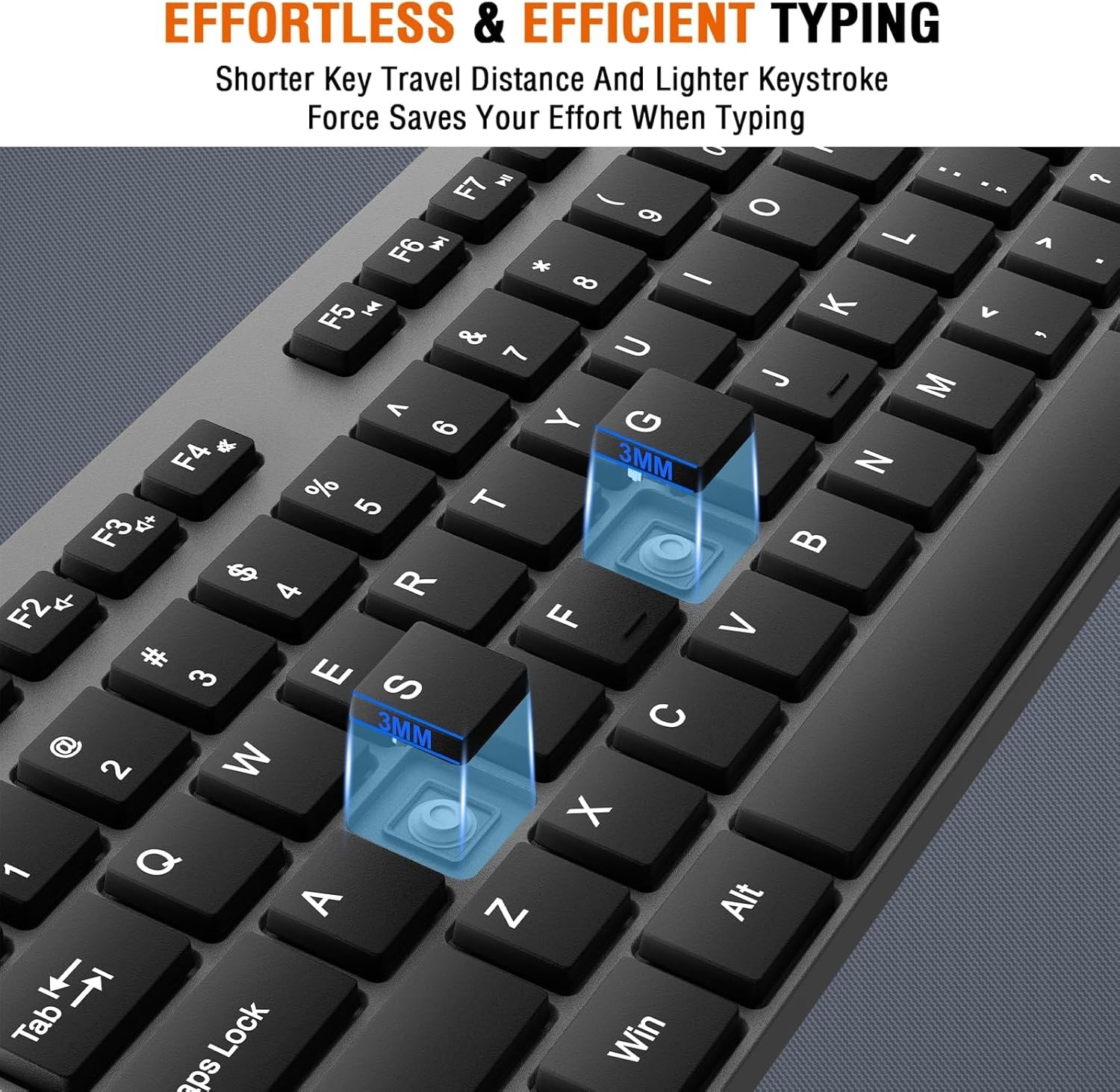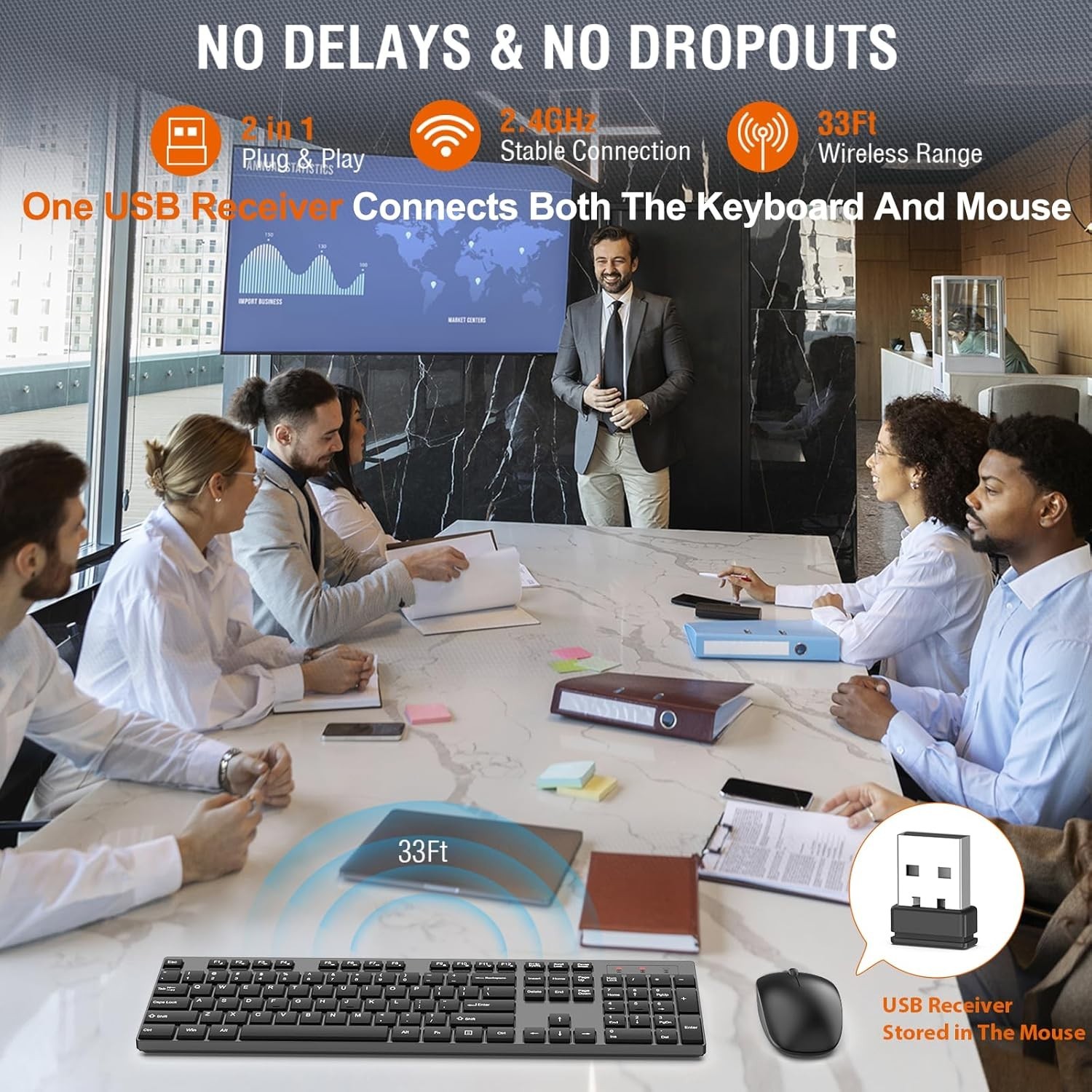 🚀 Upgrade Your Workspace with Wireless Keyboard and Mouse Combo, EDJO Silent Full Size Cordless USB Keyboard M