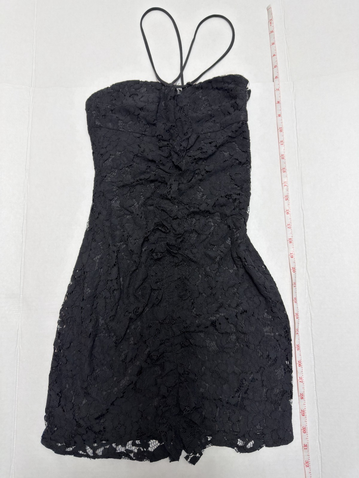 ZARA Women’s Satin Effect Pleated Mini Dress – Black – XS – Lace Trim (EJ3)