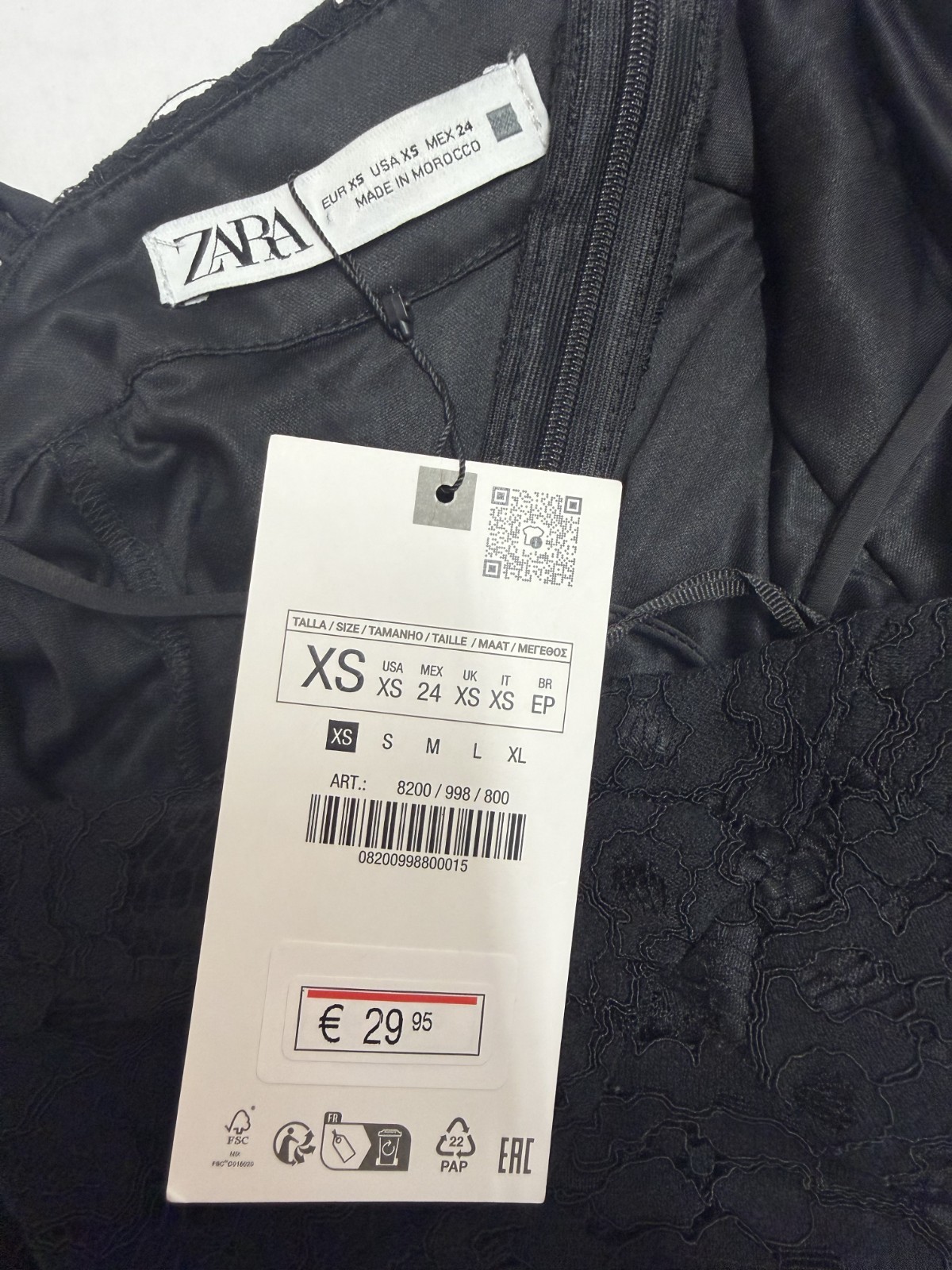 1 × ZARA Women’s Satin Effect Pleated Lace Trim Mini Dress (XS, Black)