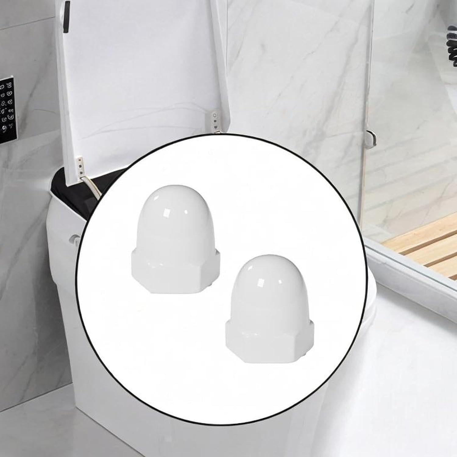 ✨ Add a clean and elegant finish to your bathroom with these ceramic toilet bolt covers.