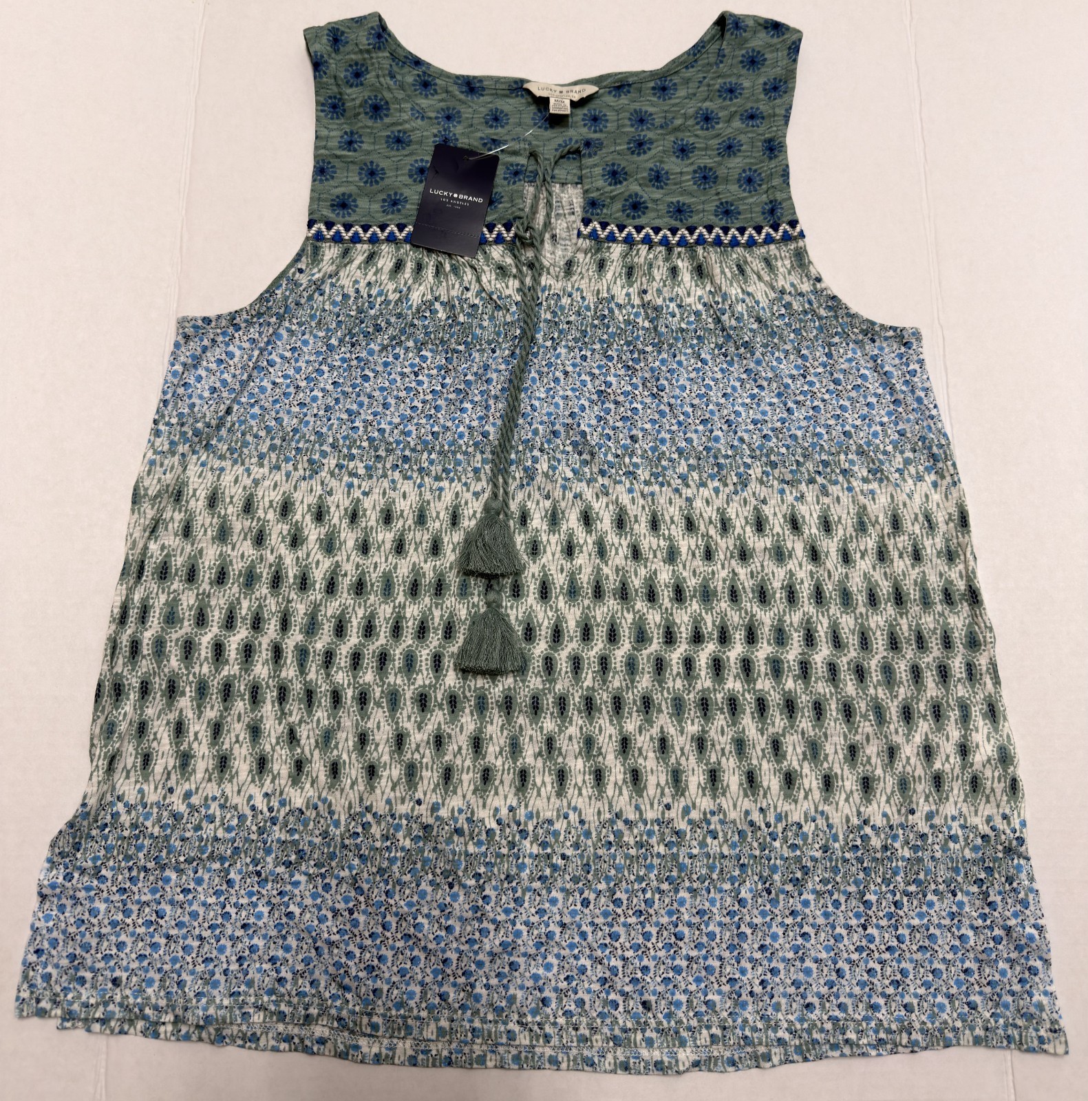 Lucky Brand Women’s Floral Blouse Top – Size Medium – Blue & Green – Sleeveless