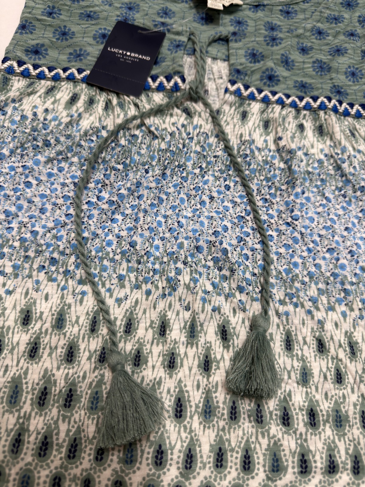 • 1 × Lucky Brand Women’s Floral Blouse (Size Medium, Blue & Green)