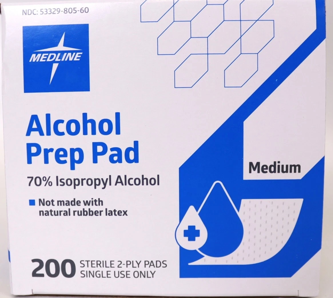Medline Alcohol 200 Prep Pads Sterile 2-Ply Medium 70% Isopropyl Alcohol