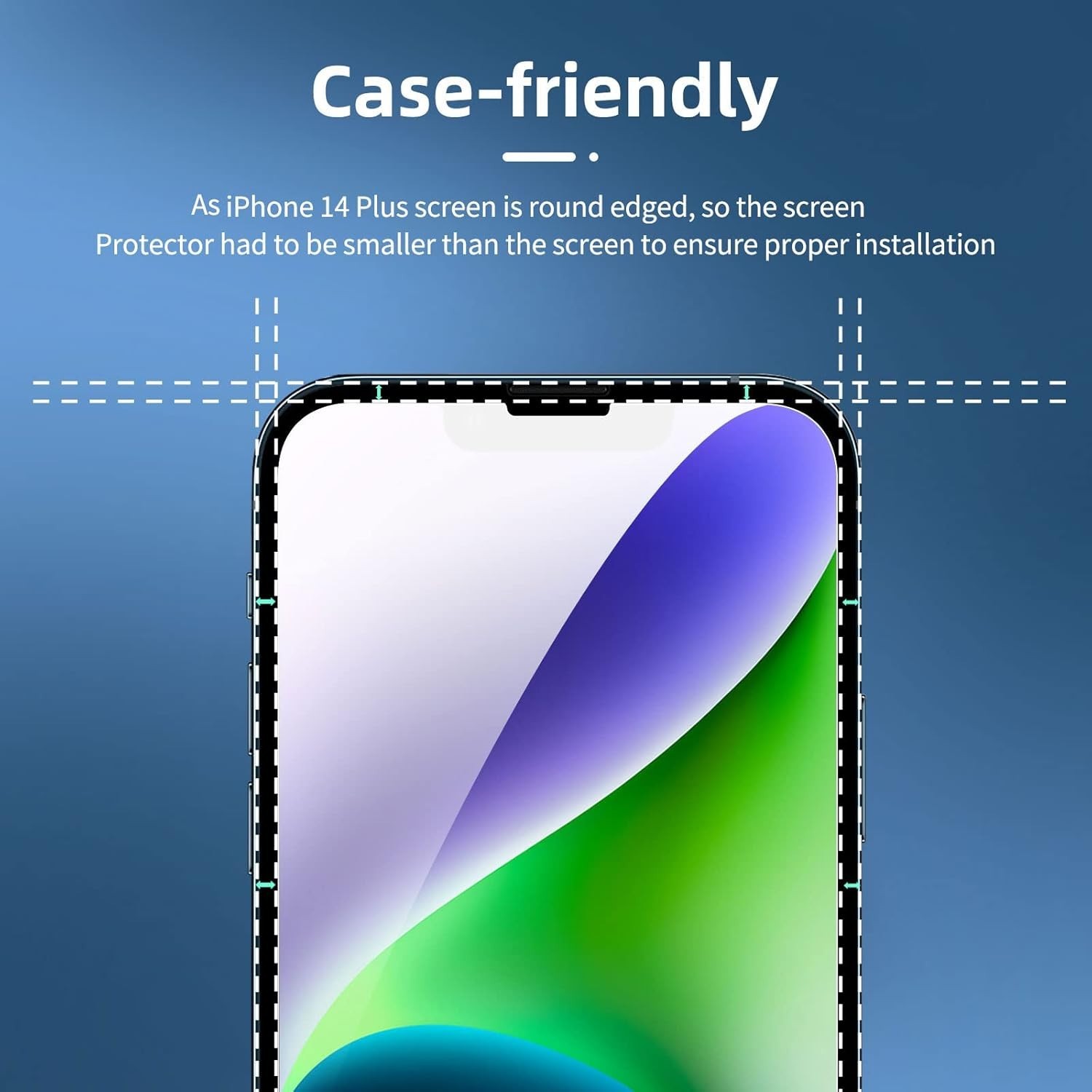 NEW’C 4 Pack Screen Protector + Camera Lens Protector for iPhone 14 Plus – 9H Tempered Glass Kit