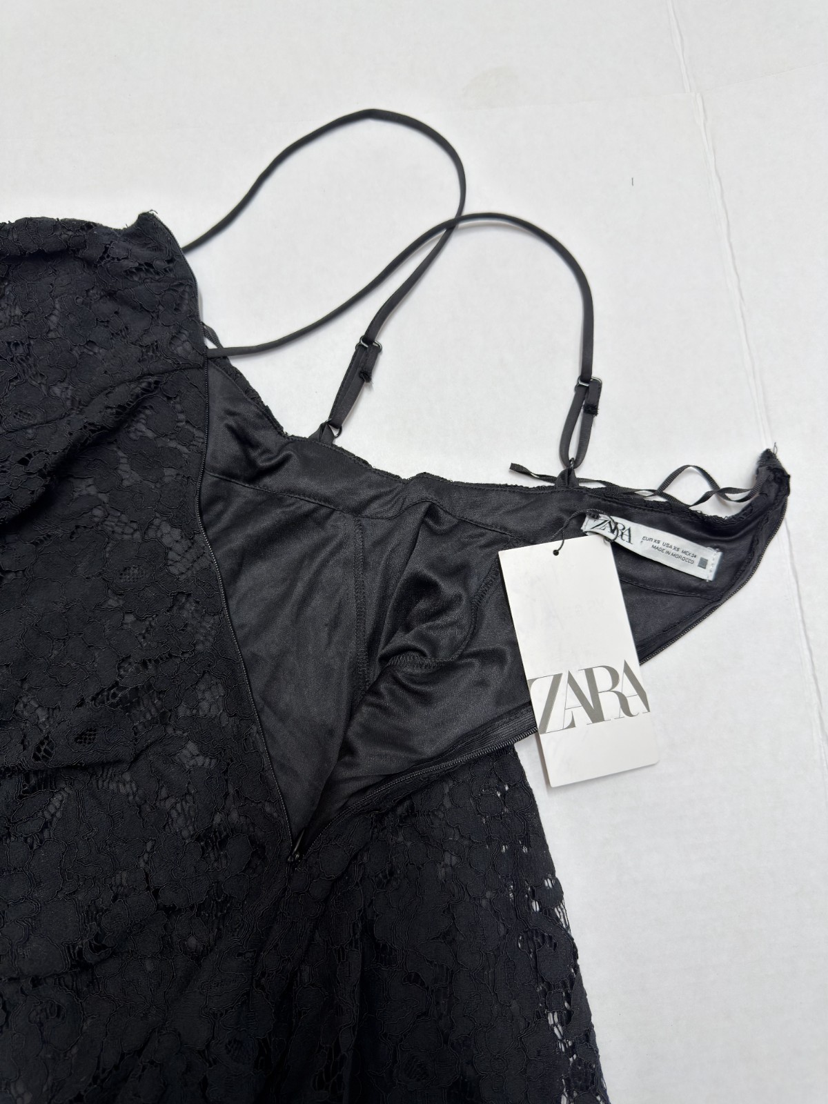 • 1 × ZARA Women’s Satin Effect Pleated Lace Trim Mini Dress (XS, Black)