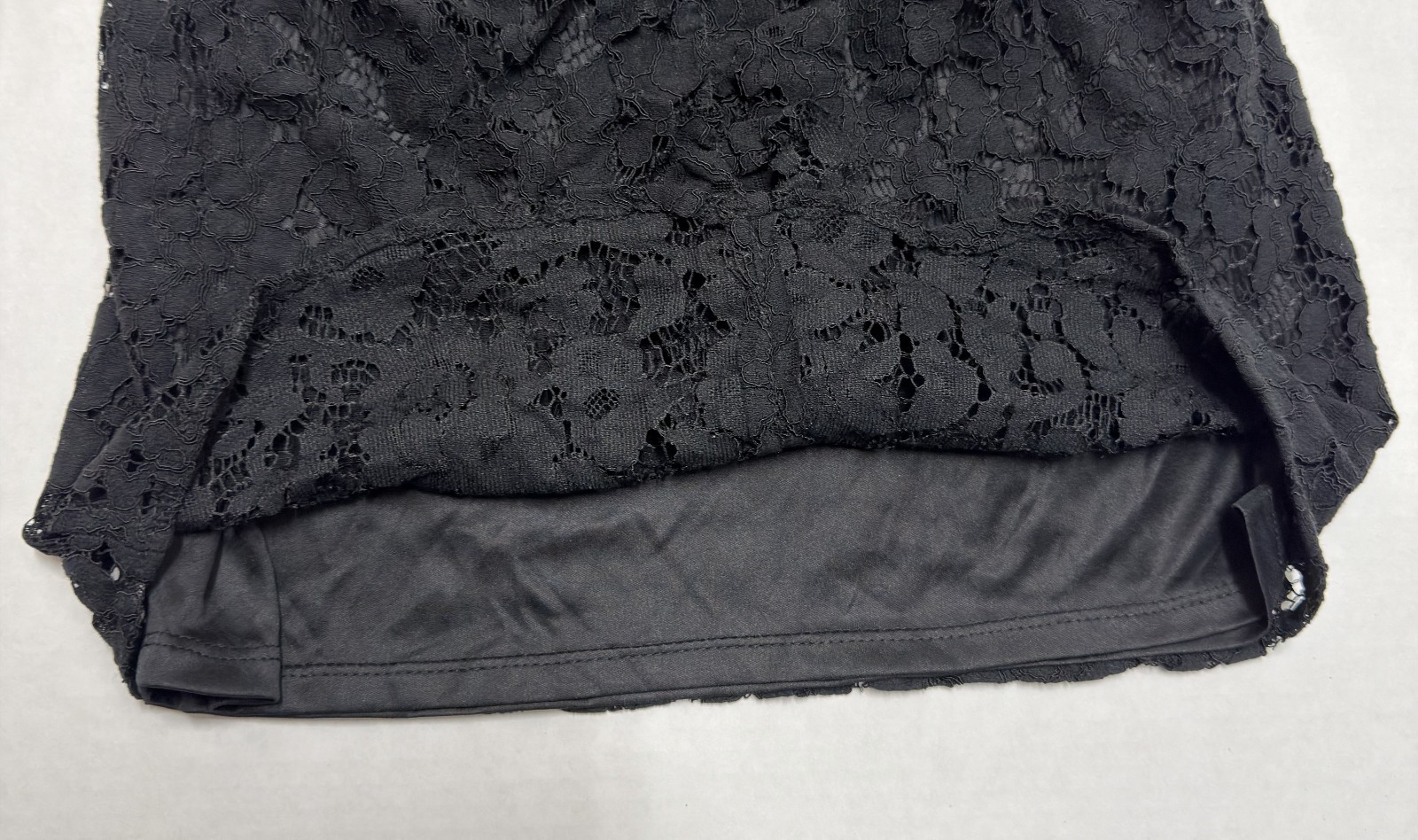 ZARA Women’s Satin Effect Pleated Mini Dress – Black – XS – Lace Trim (EJ3)